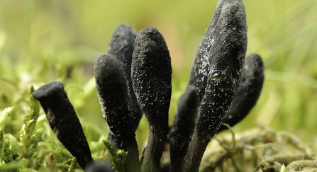 What to look for: Look like eerie black or dark blue finger-like fungi poking out of the ground.