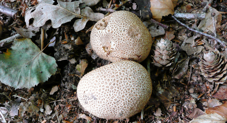 Called a puffball because it releases a cloud of spores in a puff when squeezed or stepped on.