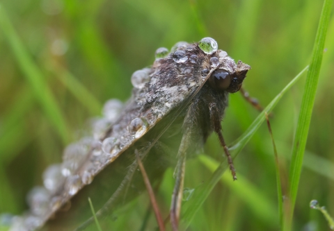 Found almost everywhere, the large yellow underwing is a night-flying moth that is often attracted to lights. It is brown with orangey-yellow hindwings.