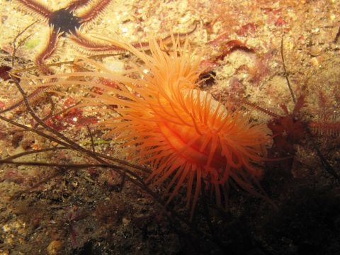 It's easy to see where this stunning bivalve got its name from - the bright orange tentacles emerging from the shell really do look like flames!