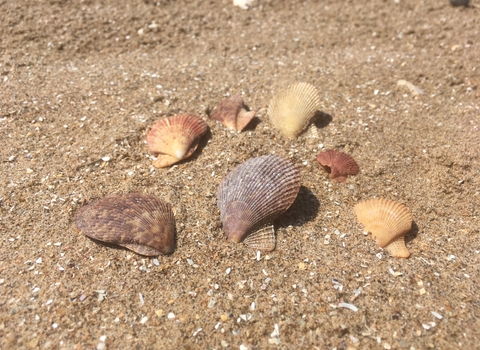 The shells of this small scallop are often found washed up on our shores and comes in lots of different colours, including pink, red, orange and purple.!